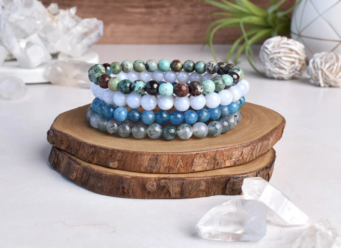 Blue Lace Agate supports the throat chakra and encourages clear expression of thoughts and feelings. It helps release old patterns of repression, promotes authentic communication, eases anger, and soothes emotional tension.