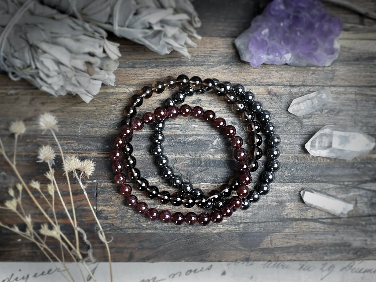 Garnet provides grounding and stability, supporting inner strength, rootedness, and the courage to honor your own rhythm.